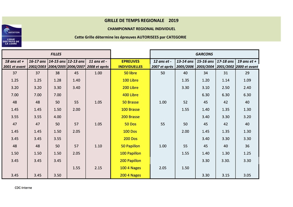 Grille de qualifications - Régionnaux individuel