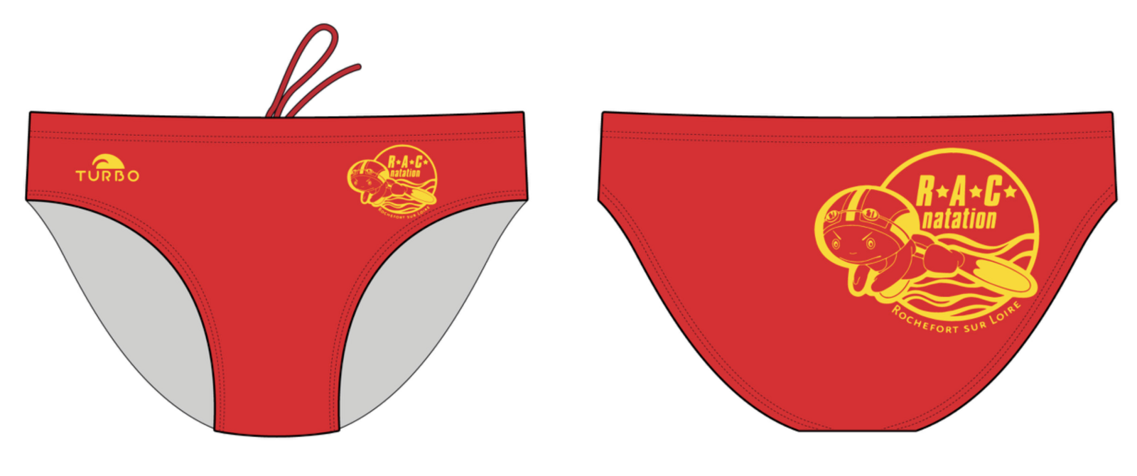 Marque Turbo Modèle maillot natation Personnalisé aux couleurs du RAC Hauteur sur les hanches 7 cm Hips = tour de hanches