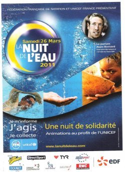 Pour la 4 ème année le Club de Natation de Chemillé organise "la nuit de l'eau "en partenariat avec L'UNICEF le samedi 26 mars à 20h00.