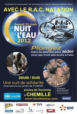 Le RAC natation s'associe à la Fédération Française de Natation et l’UNICEF pour la 5e Nuit de l'Eau le Samedi 31 mars 2012 de 20h00 à minuit à la piscine de l'Hyrome de Chemillé