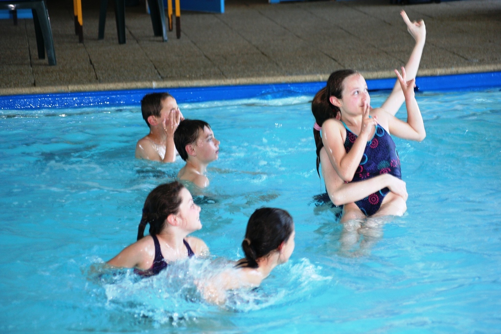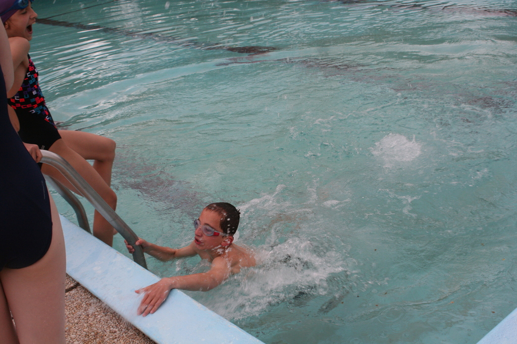 Des élèves indisciplinés finissent leur entrainement dans le bassin extérieur à 11 ° !!! mais ils n'ont même pas perdu le sourire !