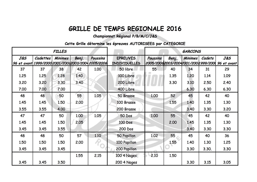 GRILLE DE TEMPS REGIONALE 2016